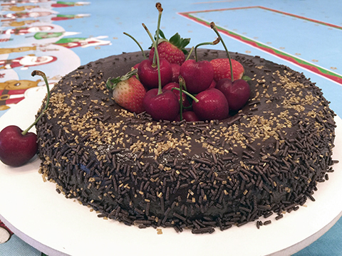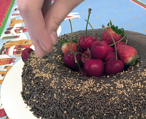- Granulado, confeitos e frutas vermelhas para decorar
