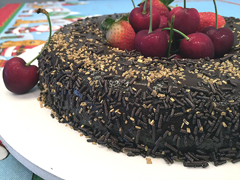 – Decore com os confeitos, granulado e frutas vermelhas